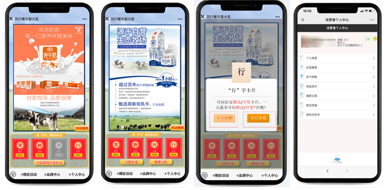 “集卡再贏大獎(jiǎng)”,掃碼獲取紅包同時(shí),可集得一張卡片,多組合集卡實(shí)現(xiàn)階梯兌獎(jiǎng),贏取不同階梯的額外獎(jiǎng)勵(lì)機(jī)會(huì)。通過向好友索取/贈(zèng)送卡片,形成用戶主動(dòng)傳播,甚至促進(jìn)用戶增長(zhǎng)裂變。